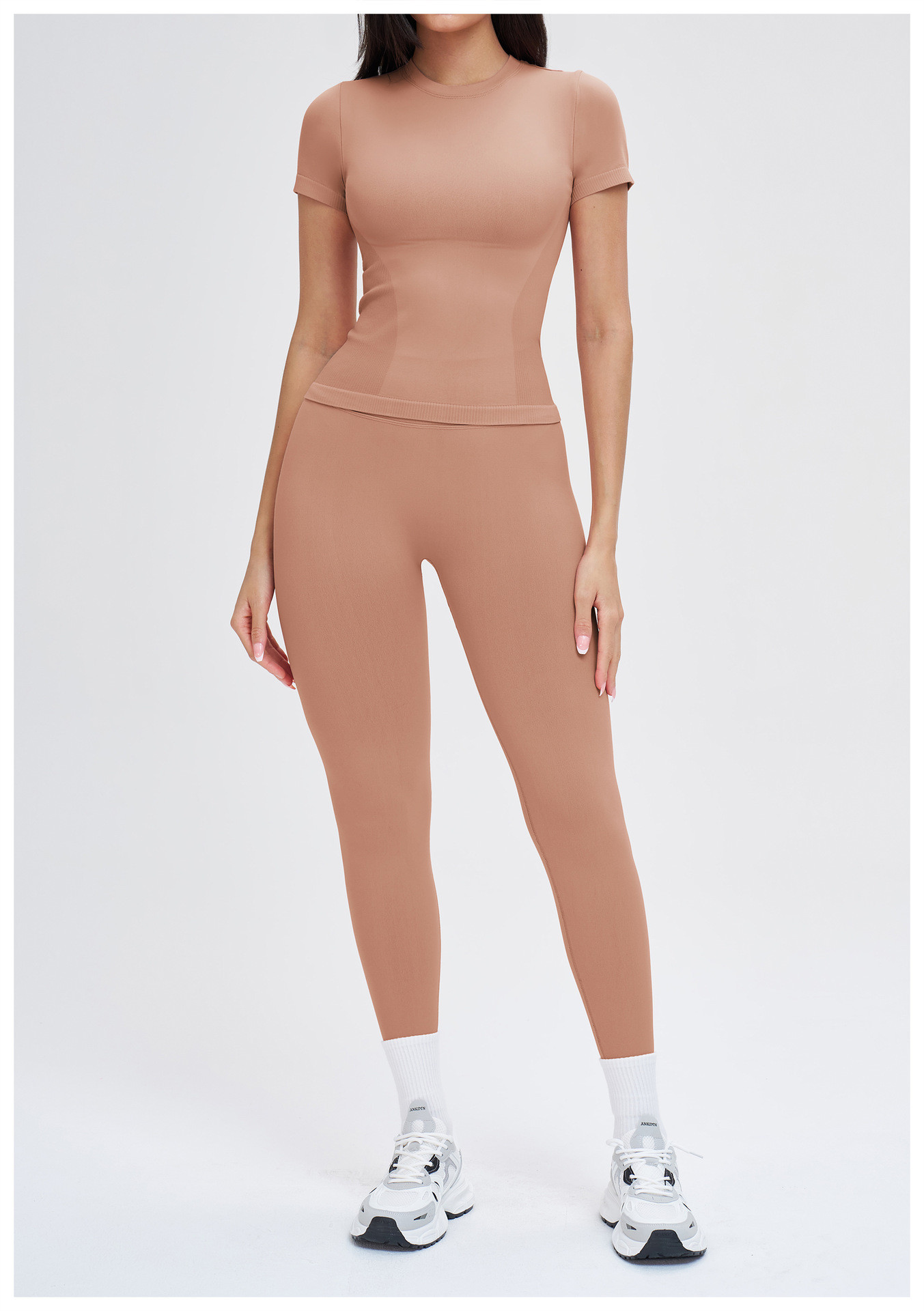 OEM & ODM Women's Cross-Border Seamless Sportswear Set - Comfortable Round Neck Fitness Yoga Set for Outdoor Running | Wholesale Activewear Solutions