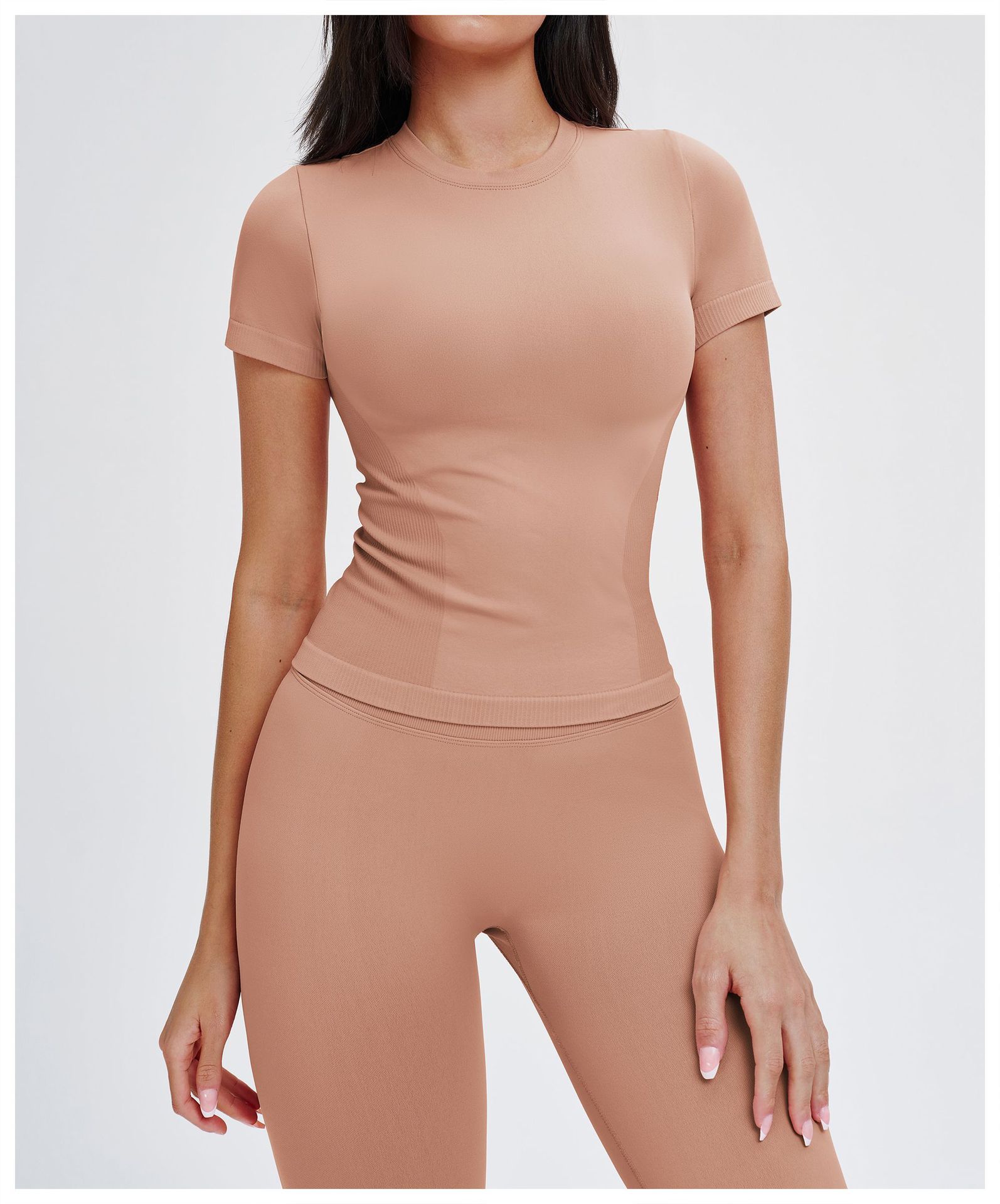OEM & ODM Cross-Border Seamless Yoga Short-Sleeve T-Shirt for Women - Round Neckline Comfortable Sports Tight-Fit Top for Yoga, Outdoor Running & Sportswear - Perfect for Wholesale & Sourcing Agents - Model 5081