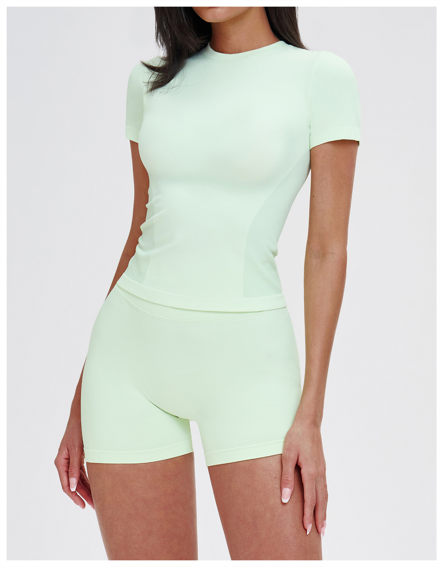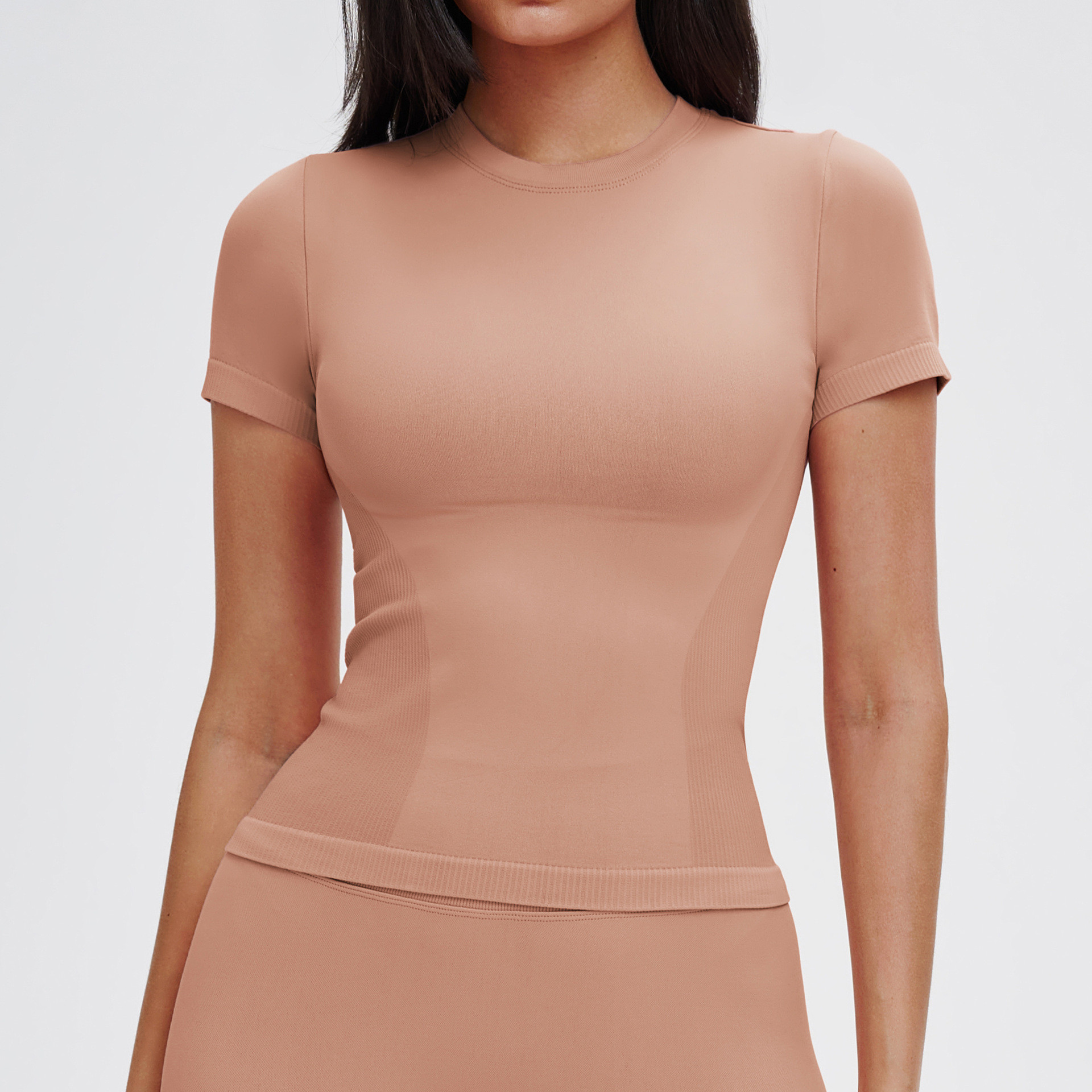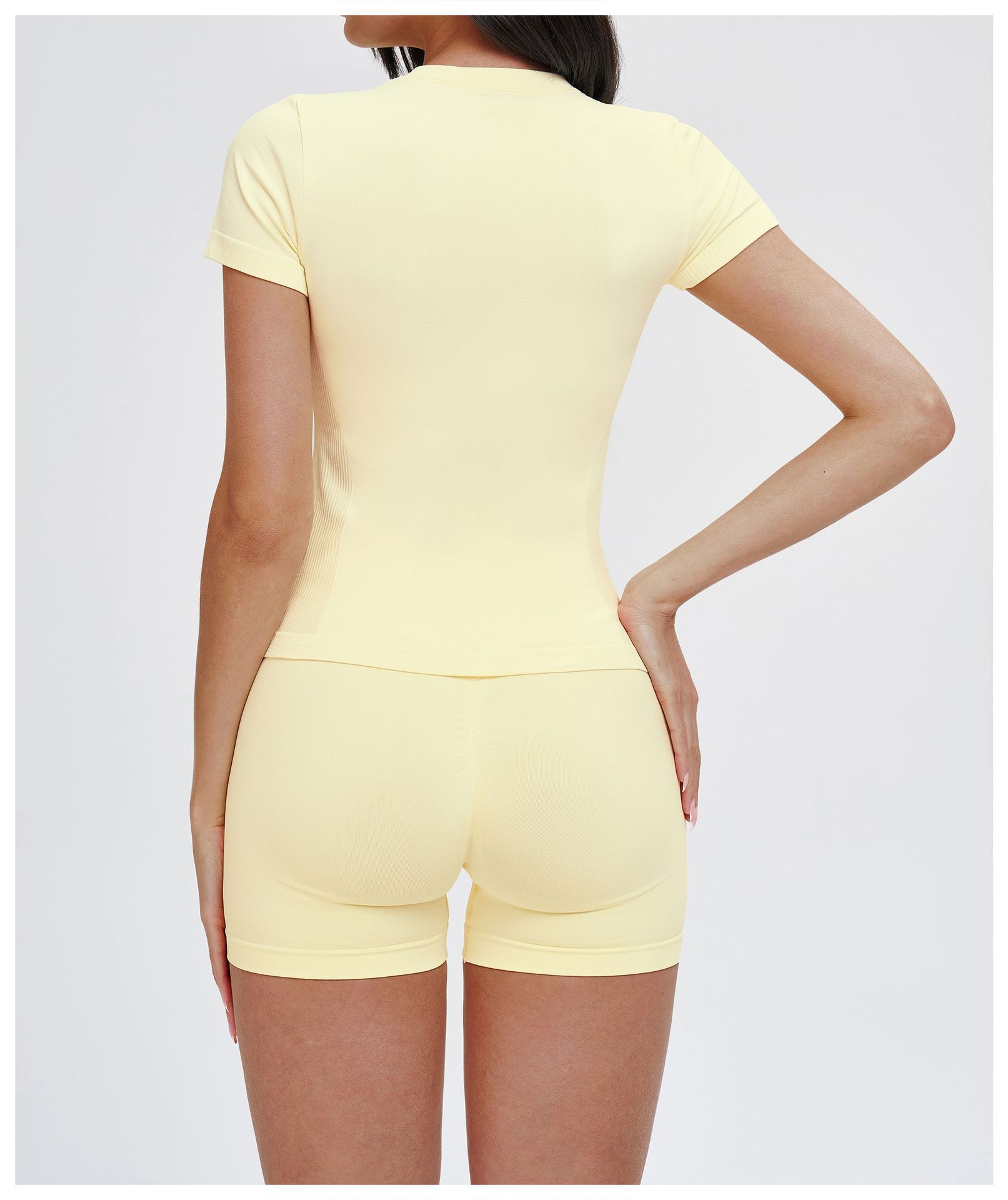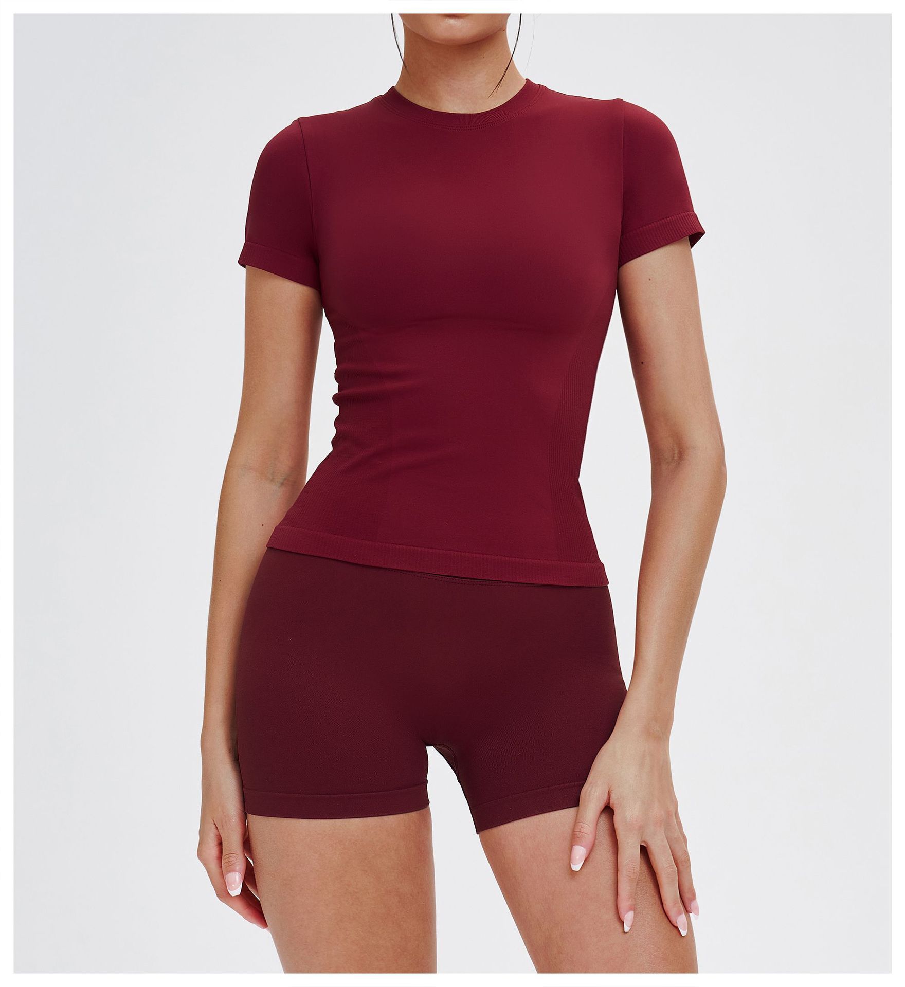 Home / All / CUSTOM WOMENS WEAR / Custom Activewear / Custom Yoga Set / OEM & ODM Cross-Border Seamless Yoga Short-Sleeve T-Shirt for Women - Round Neckline Comfortable Sports Tight-Fit Top for Yoga, Outdoor Running & Sportswear - Perfect for Wholesale & Sourcing Agents - Model 5081