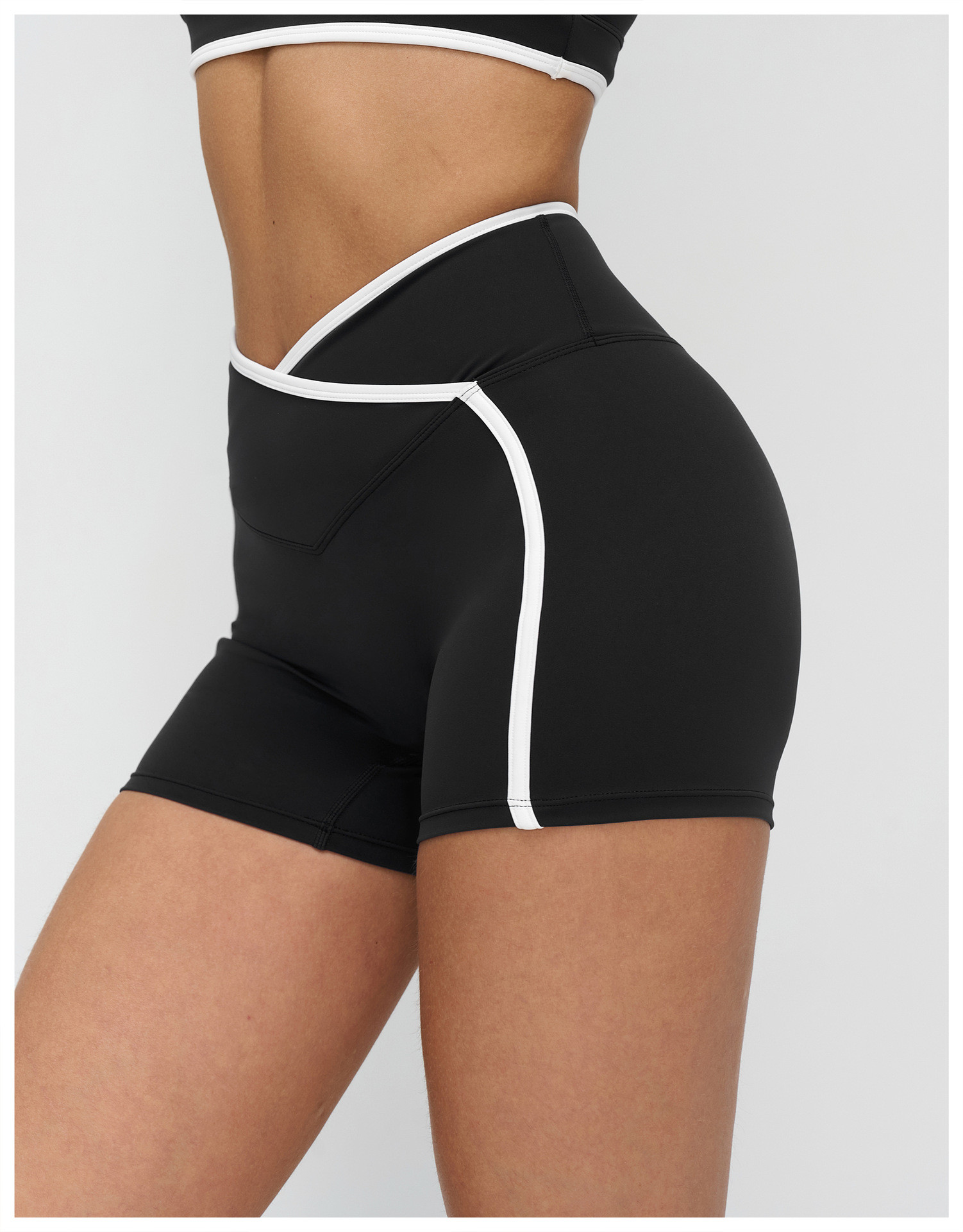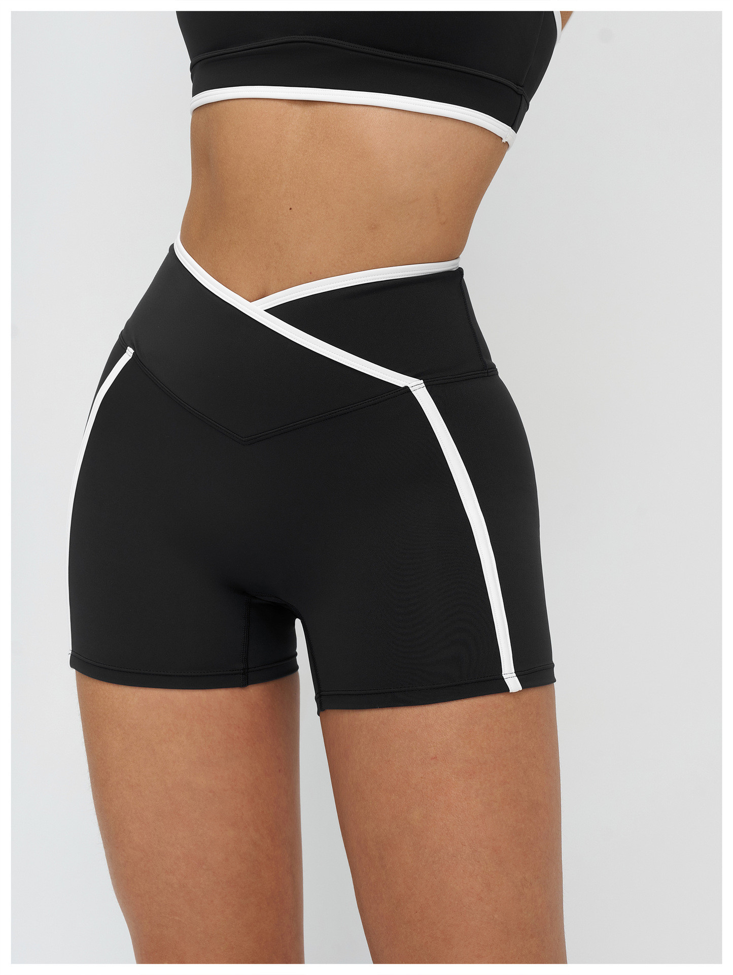 OEM & ODM Cross-Border Bare Sensation Contrasting Color Yoga Shorts for Women - Crossed Waist Tight Fit Fitness Pants for Outdoor Running & Sports - Perfect for Wholesale & Sourcing Agents - Model 9528