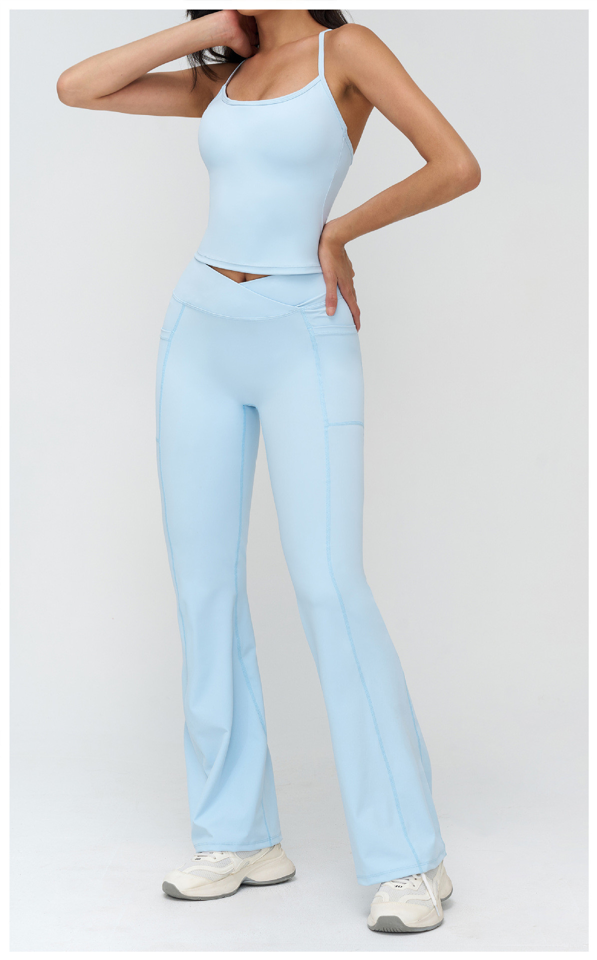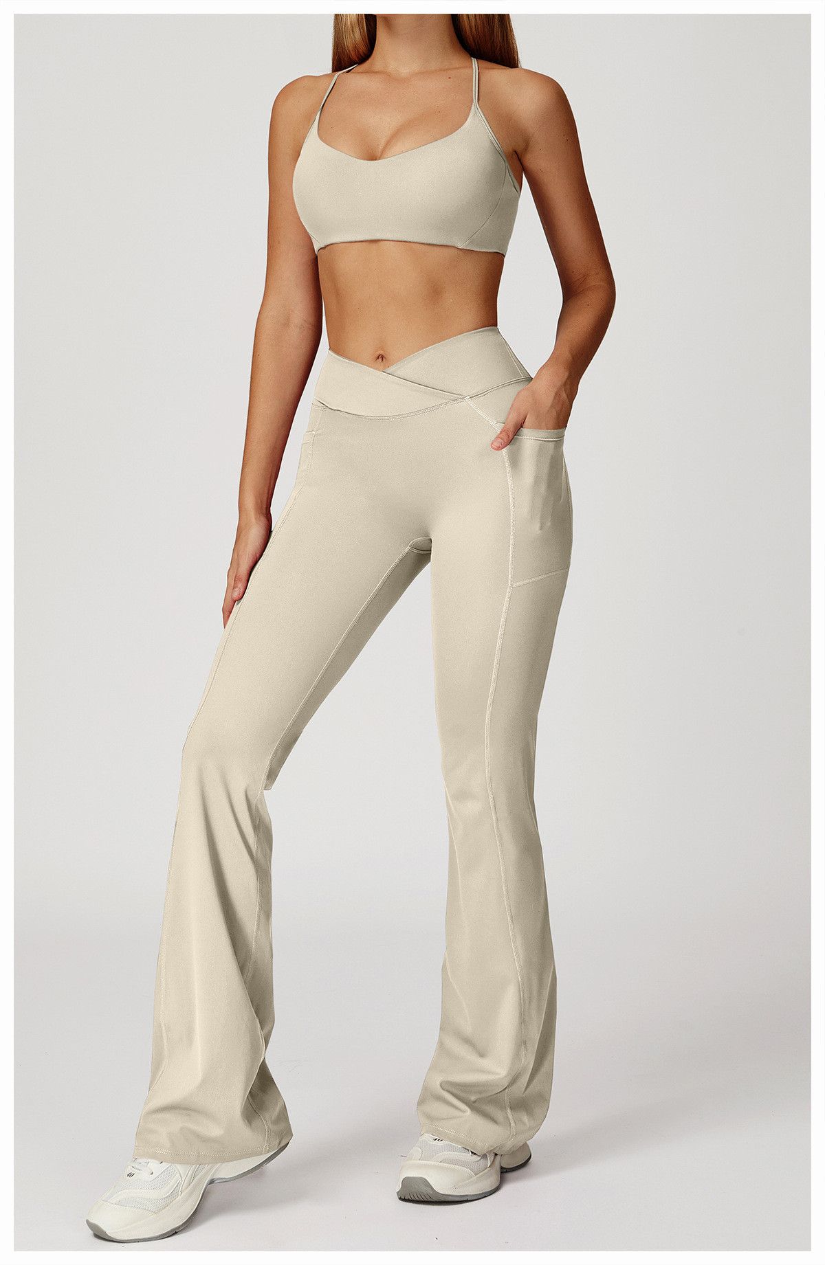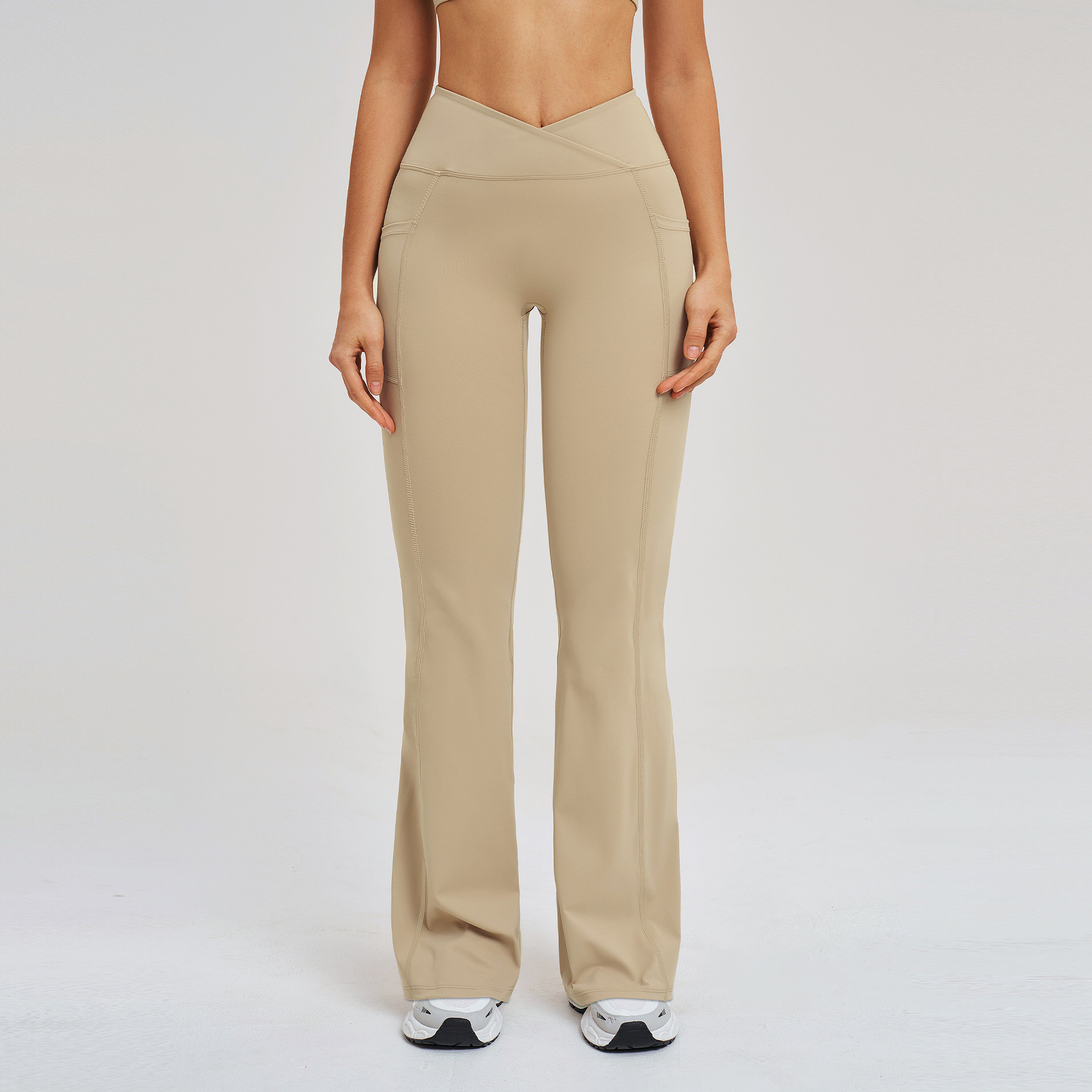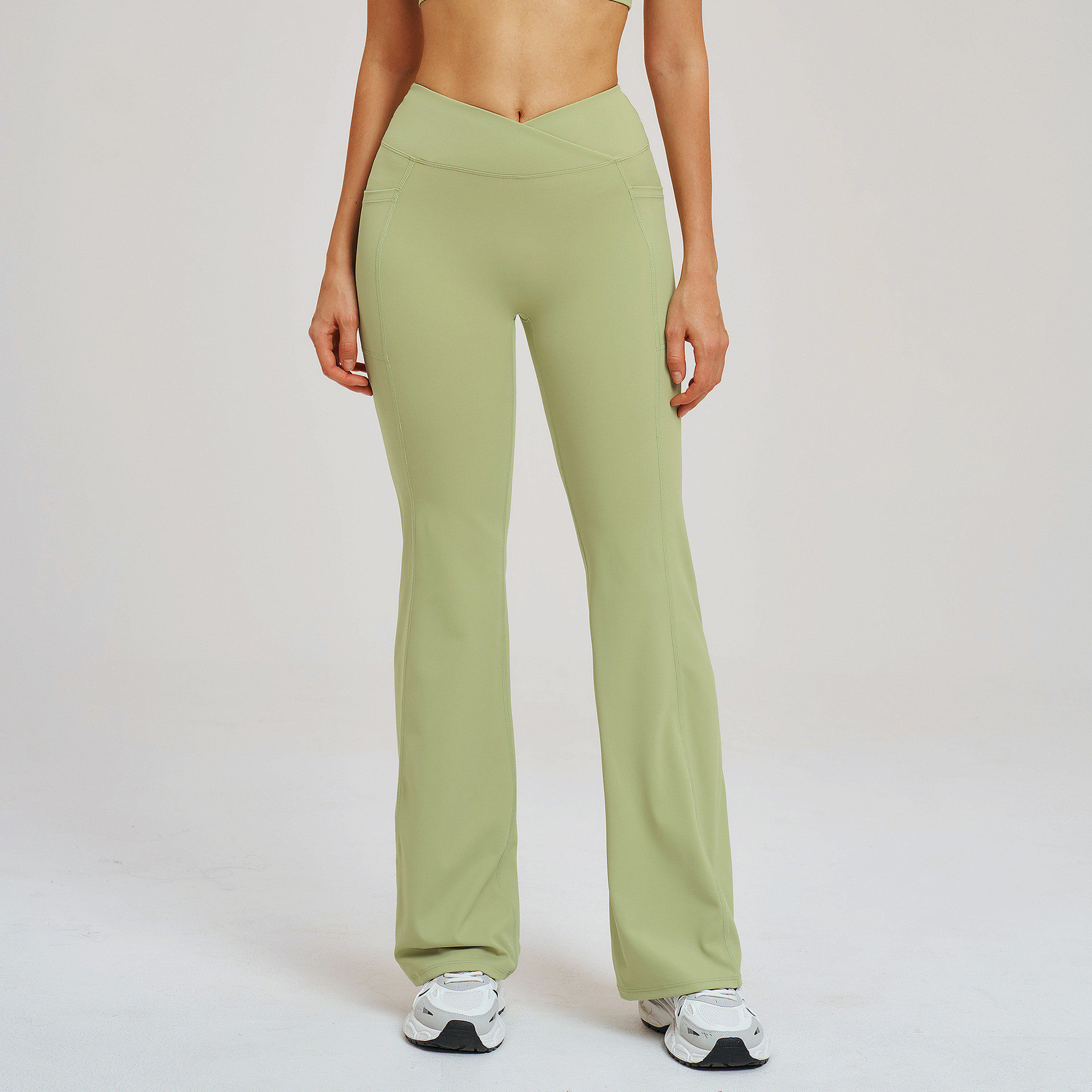 Home / All / CUSTOM WOMENS WEAR / Custom Activewear / Custom Yoga Set / OEM & ODM Cross-Border Crossed-Knit High-Waisted Sheer Flared Pants for Women - Wide Legs Subtle Ruffles Sportswear for Outdoor Leisure & Sports - Perfect for Wholesale & Sourcing Agents - Model 2030