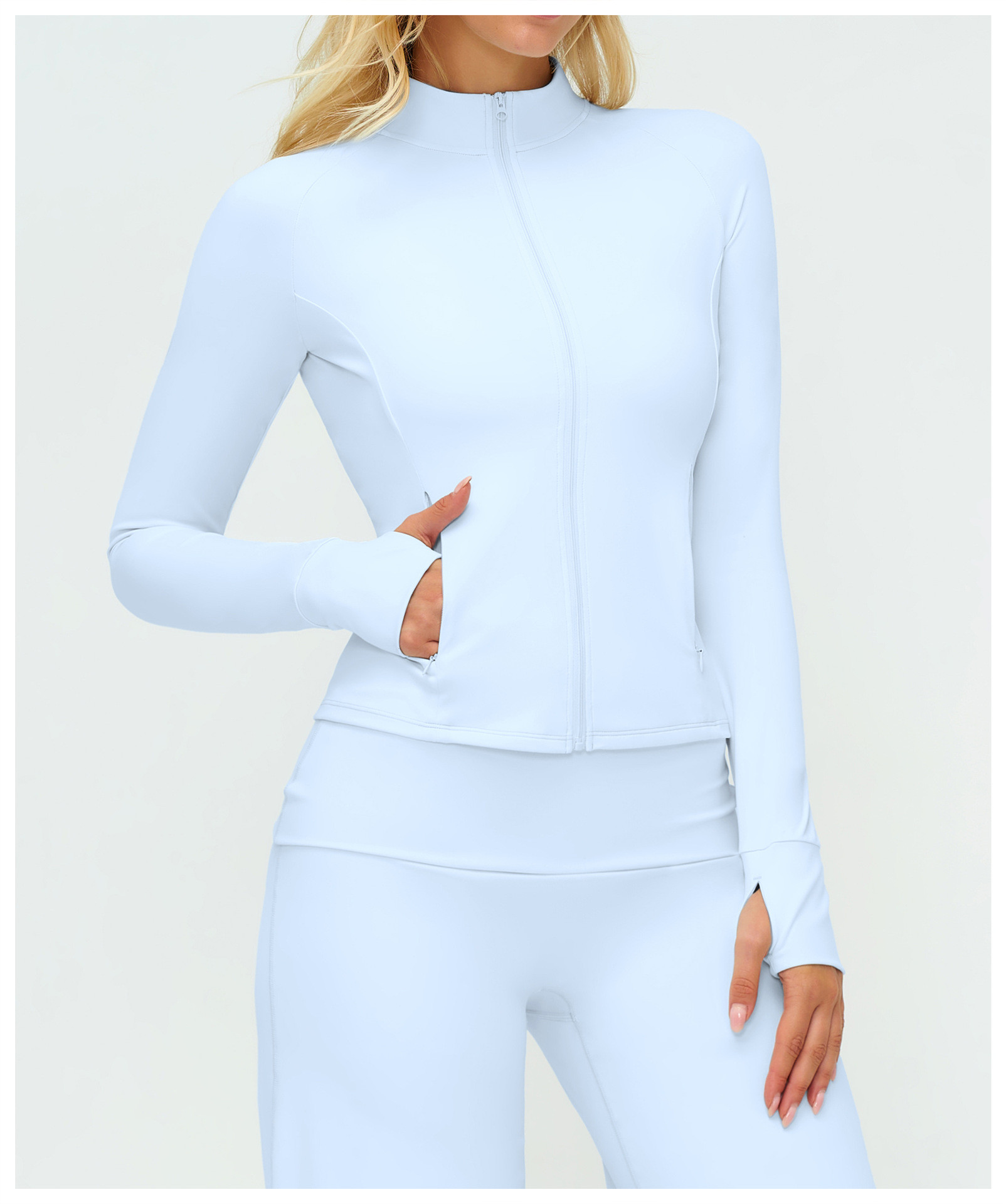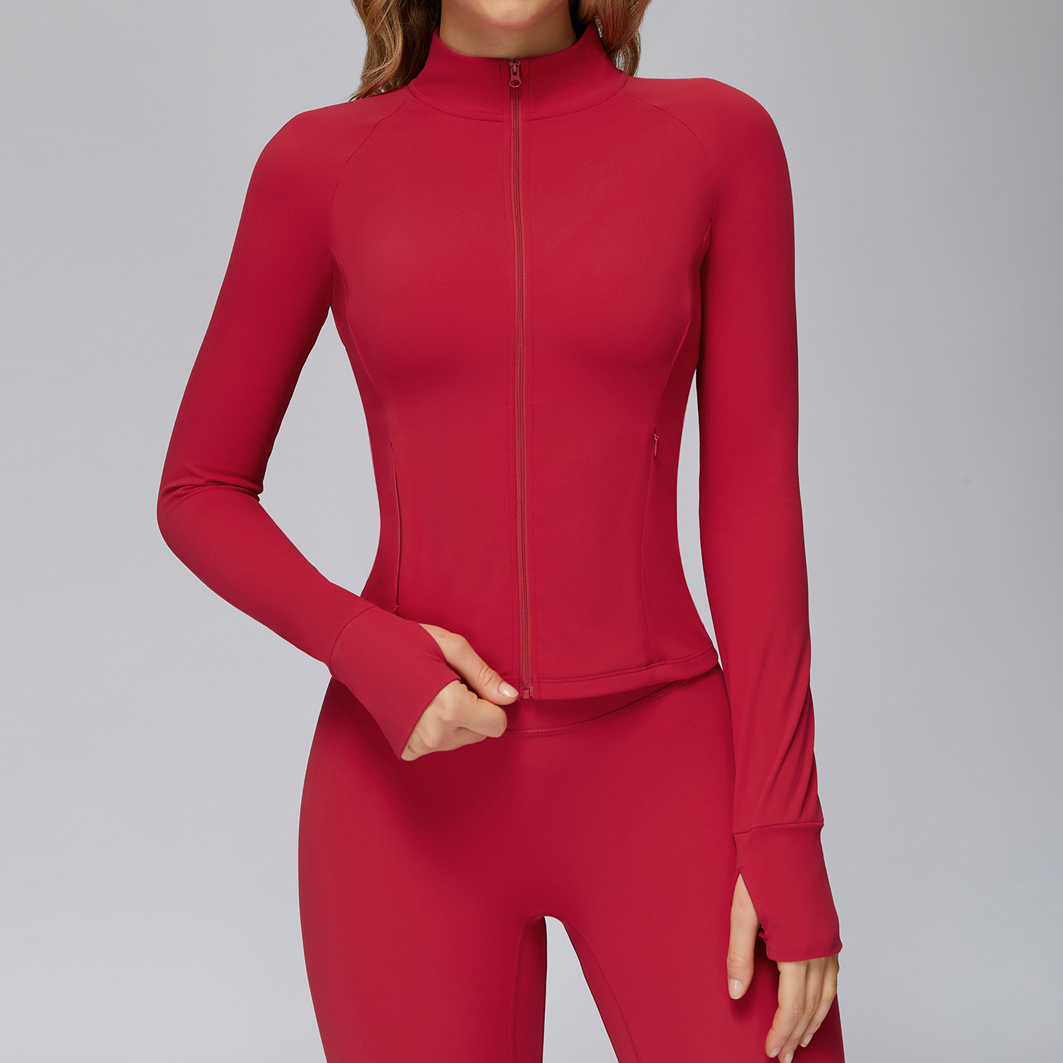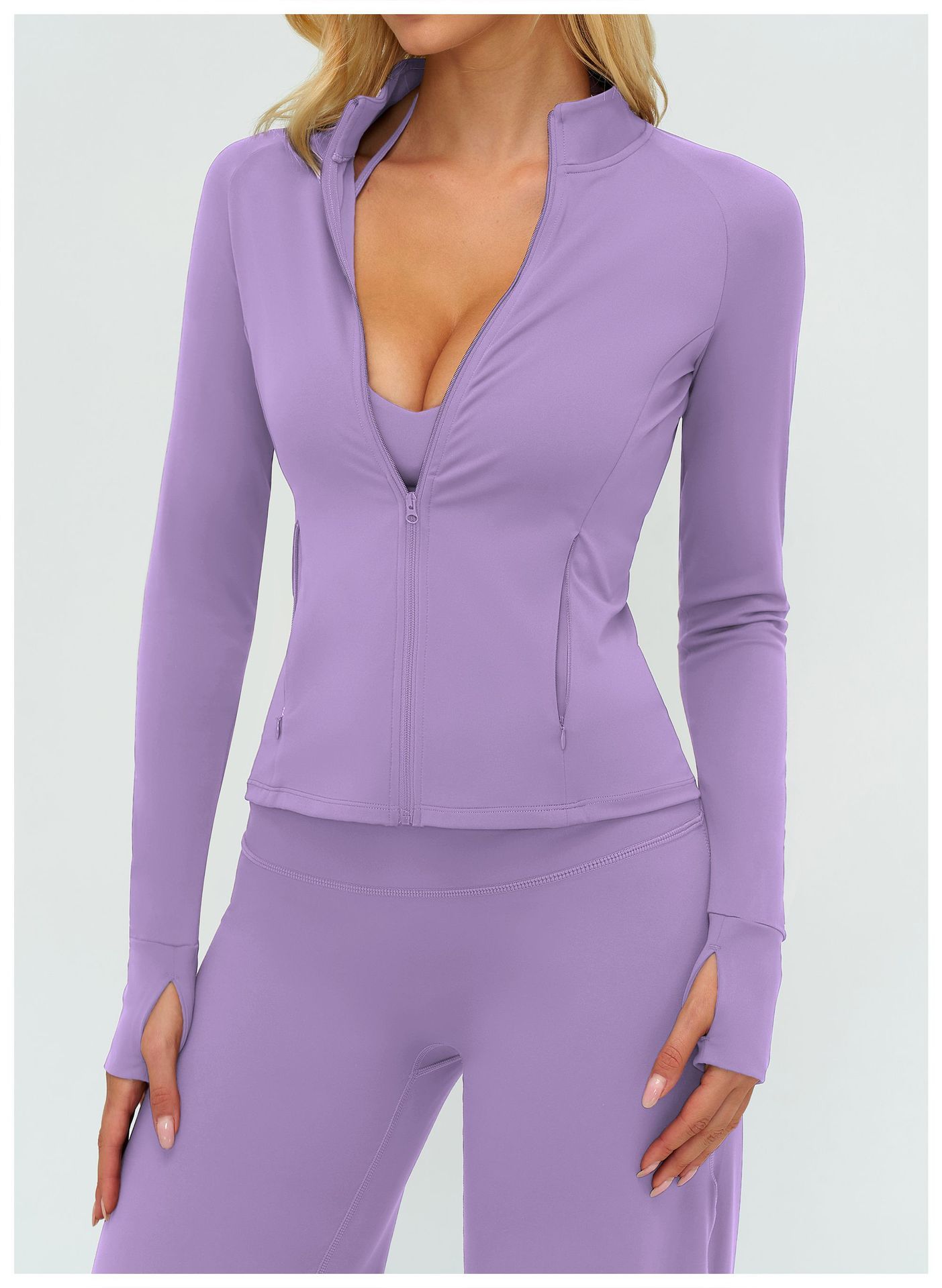 Home / All / CUSTOM WOMENS WEAR / Custom Activewear / Custom Yoga Set / OEM & ODM Cross-Border Brushed Yoga Coat for Women - Long Sleeves Zipper Pockets Tight-Fitting Sportswear for Outdoor Running & Fitness - Perfect for Wholesale & Sourcing Agents - Model 45