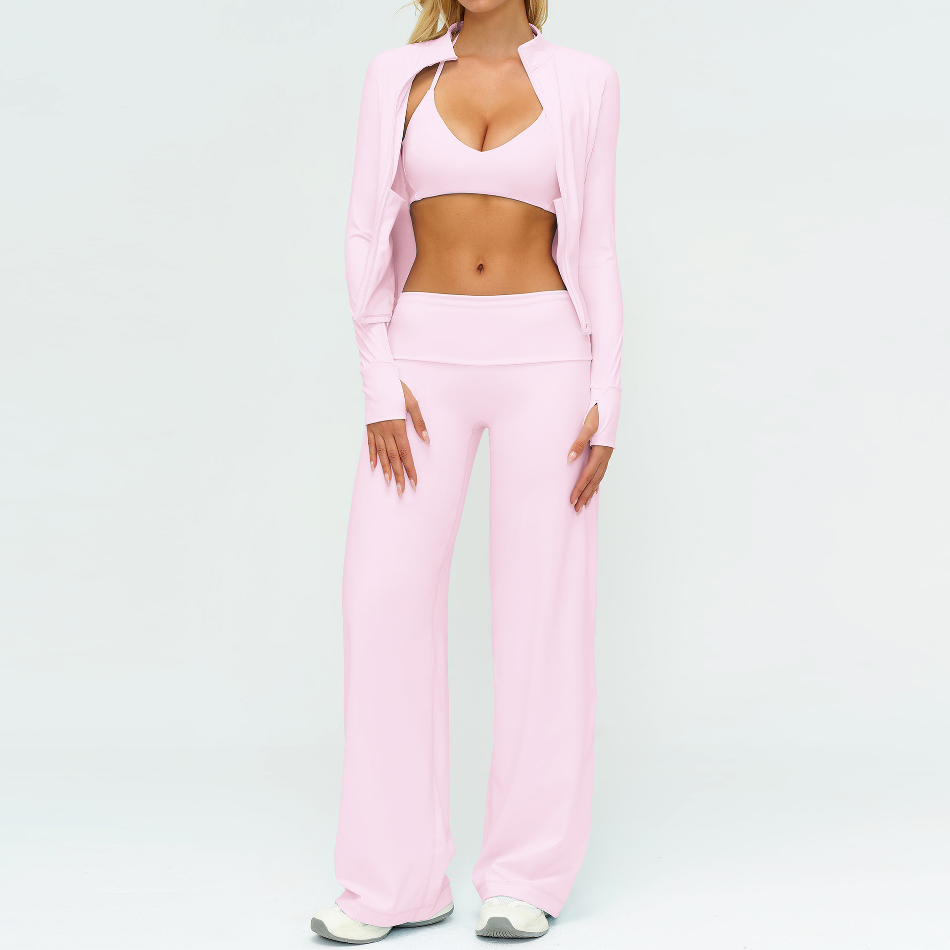 OEM & ODM Cross-Border European and American Brushed Yoga Set for Women - Loose Casual Fashion Long-Sleeved Three-Piece Sportswear for Outdoor Running & Fitness - Perfect for Wholesale & Sourcing Agents - Model 5529