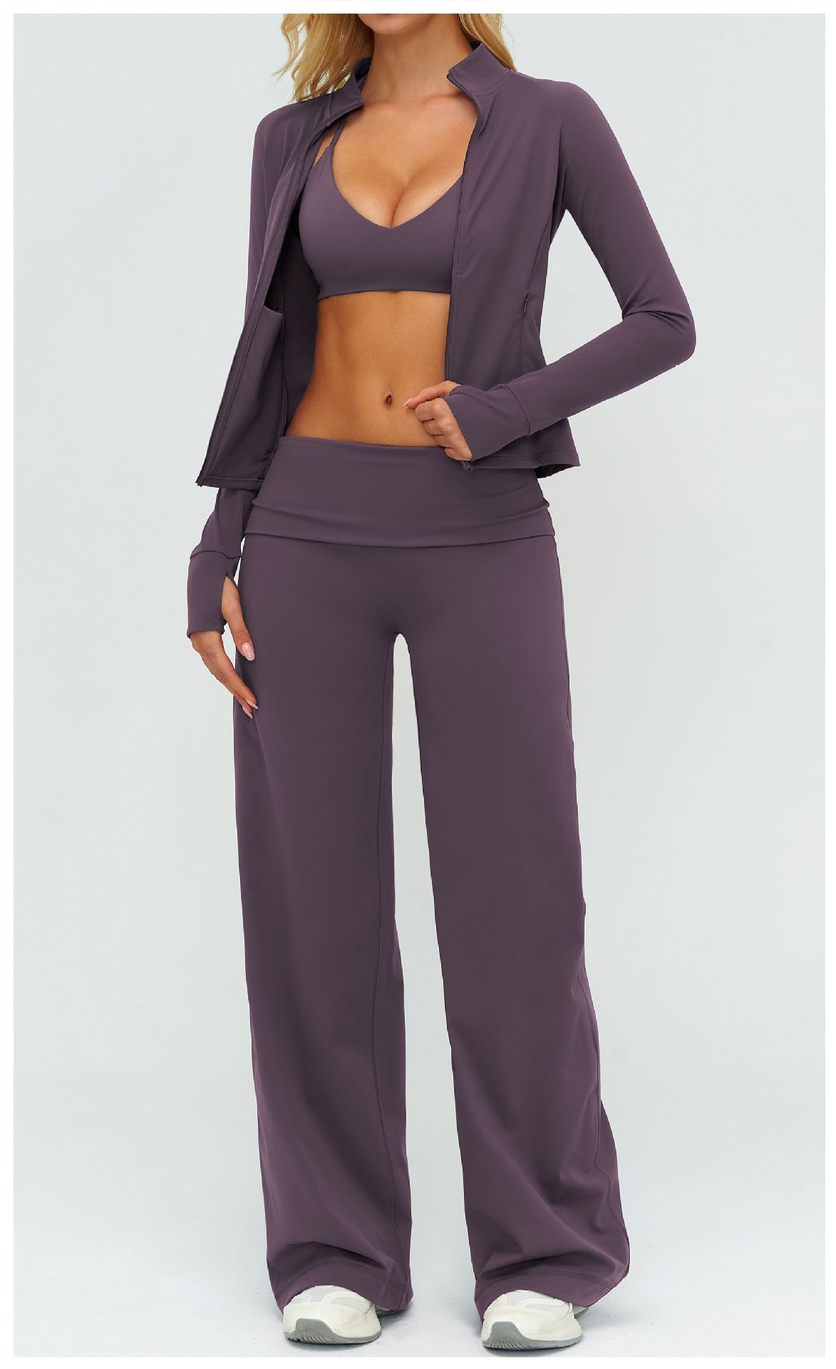 Home / All / CUSTOM WOMENS WEAR / Custom Activewear / Custom Yoga Set / OEM & ODM Cross-Border European and American Brushed Yoga Set for Women - Loose Casual Fashion Long-Sleeved Three-Piece Sportswear for Outdoor Running & Fitness - Perfect for Wholesale & Sourcing Agents - Model 5529