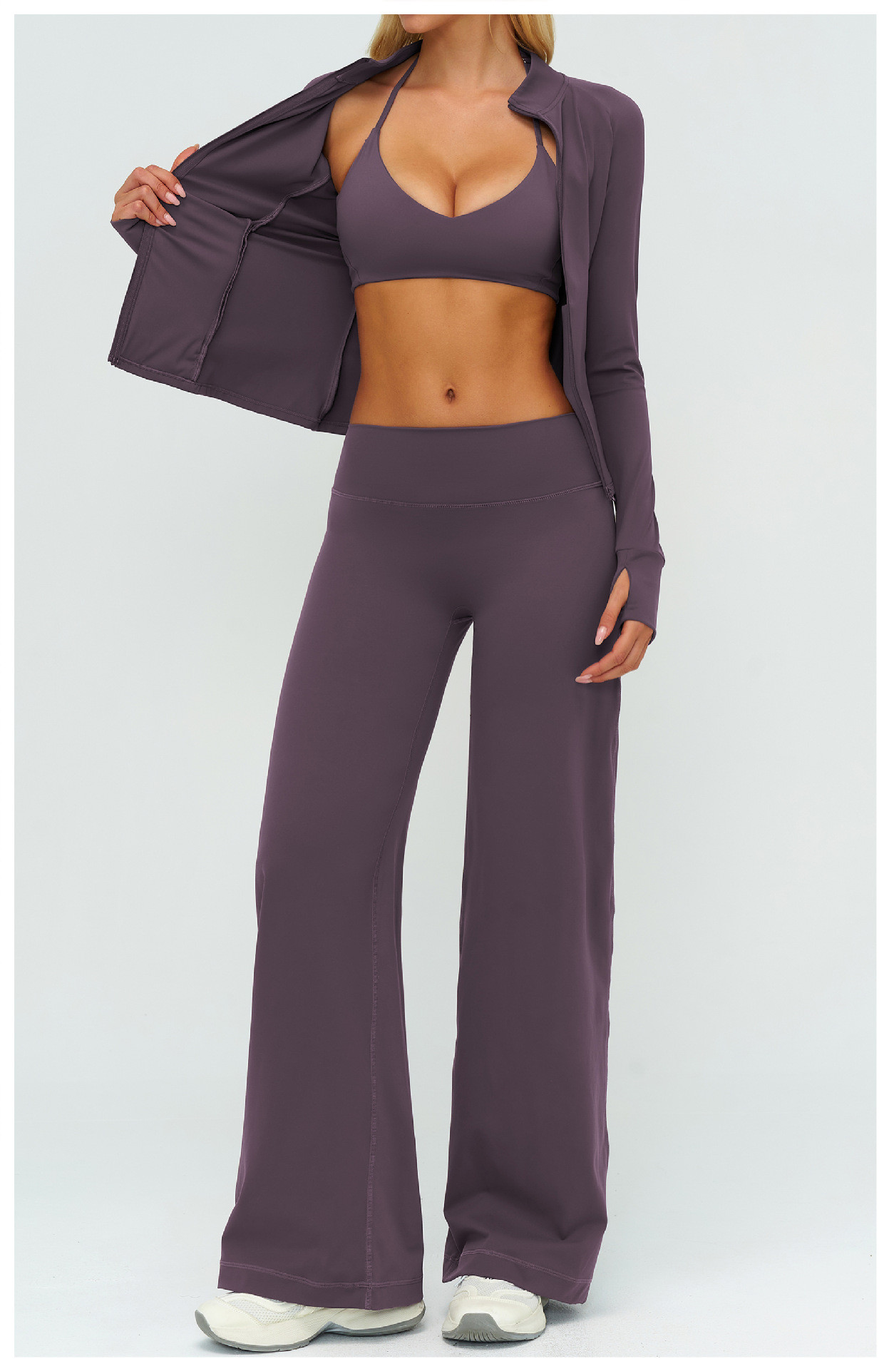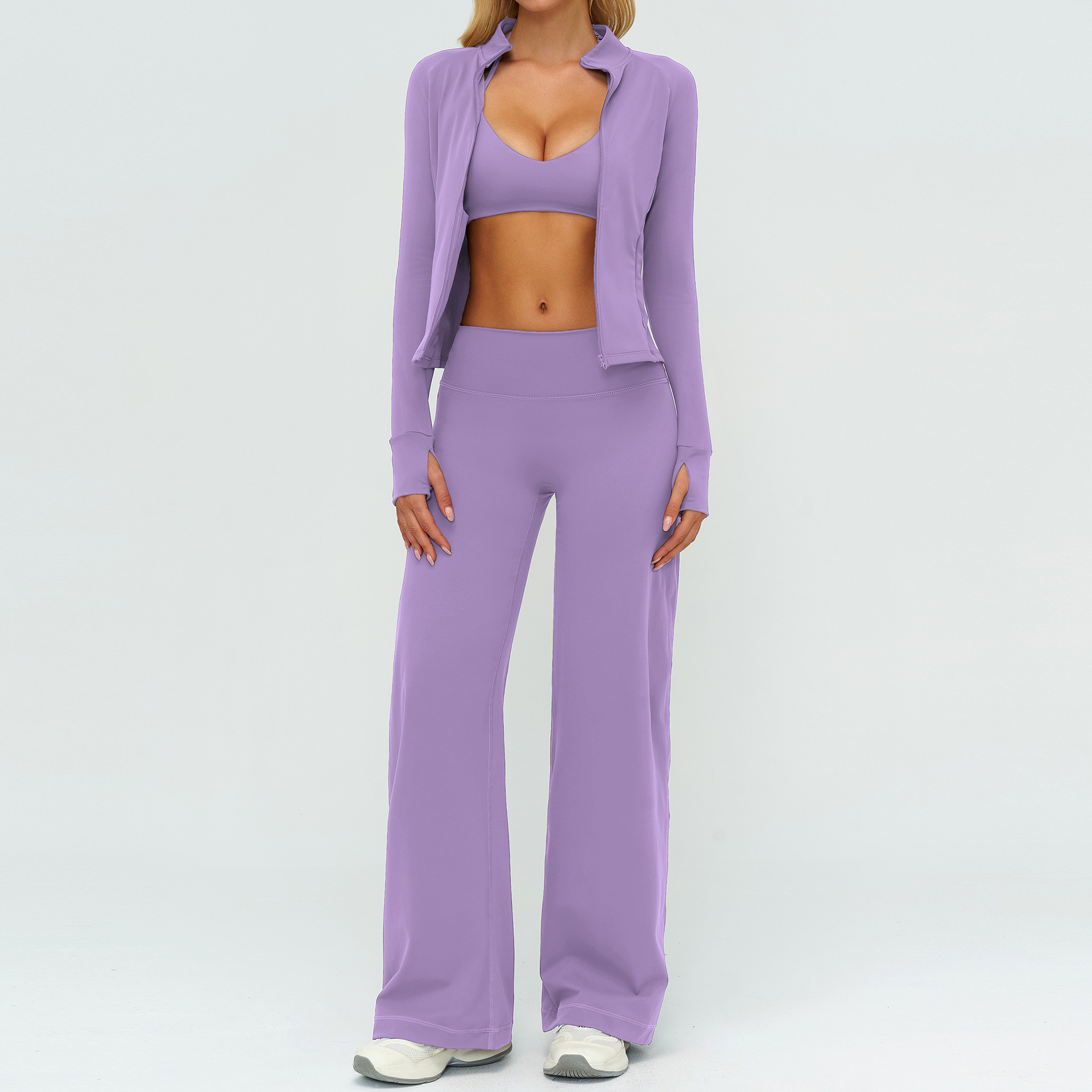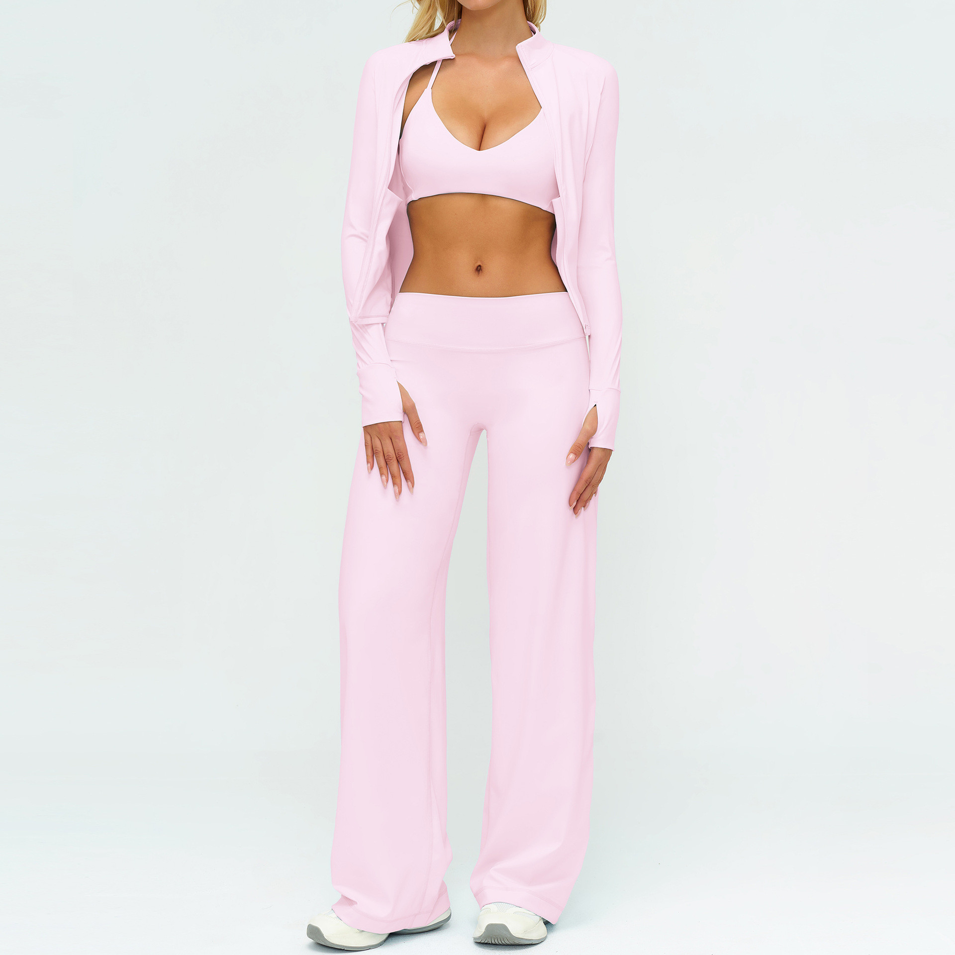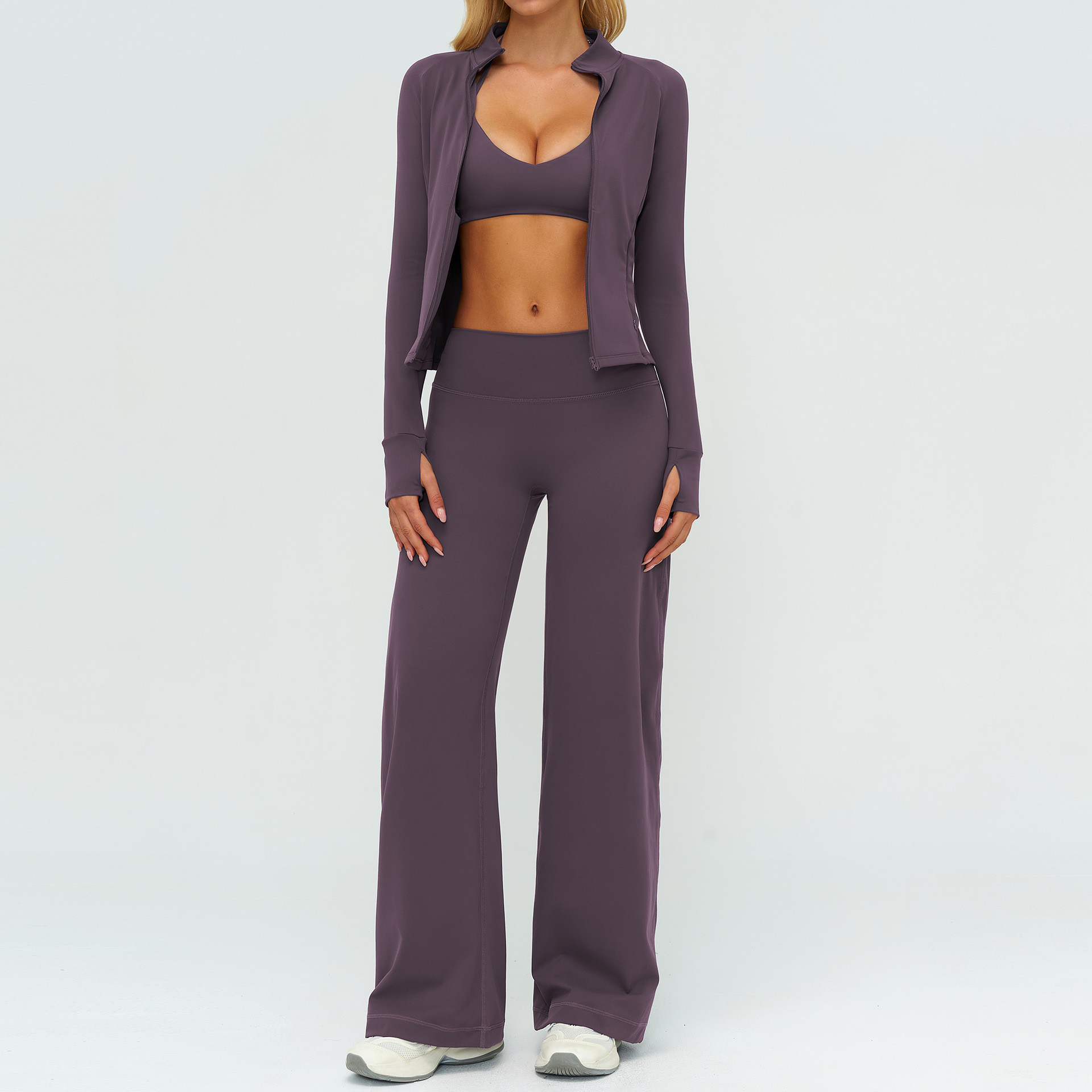 OEM & ODM Cross-Border European and American Brushed Yoga Set for Women - Loose Casual Fashion Long-Sleeved Three-Piece Sportswear for Outdoor Running & Fitness - Perfect for Wholesale & Sourcing Agents - Model 5529