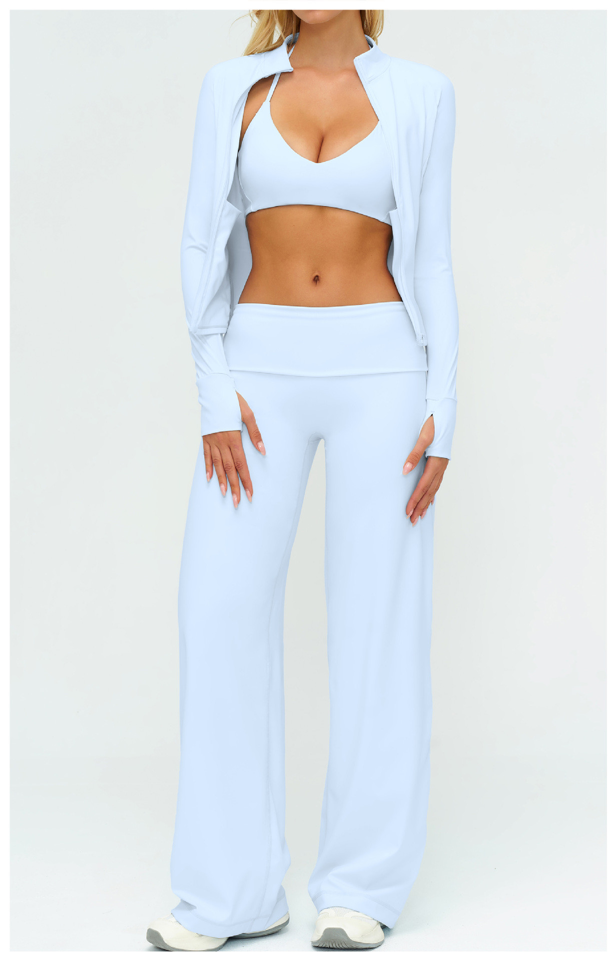 Home / All / CUSTOM WOMENS WEAR / Custom Activewear / Custom Yoga Set / OEM & ODM Cross-Border European and American Brushed Yoga Set for Women - Loose Casual Fashion Long-Sleeved Three-Piece Sportswear for Outdoor Running & Fitness - Perfect for Wholesale & Sourcing Agents - Model 5529