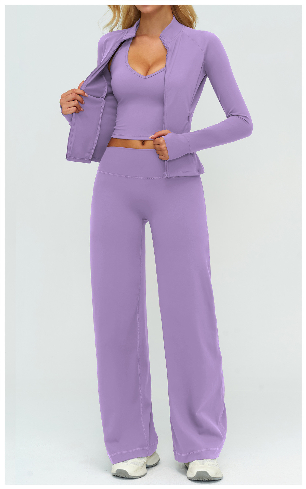 Home / All / CUSTOM WOMENS WEAR / Custom Activewear / Custom Yoga Set / OEM & ODM Cross-Border European and American Brushed Yoga Set for Women - Loose Casual Fashion Long-Sleeved Three-Piece Sportswear for Outdoor Running & Fitness - Perfect for Wholesale & Sourcing Agents - Model 5529