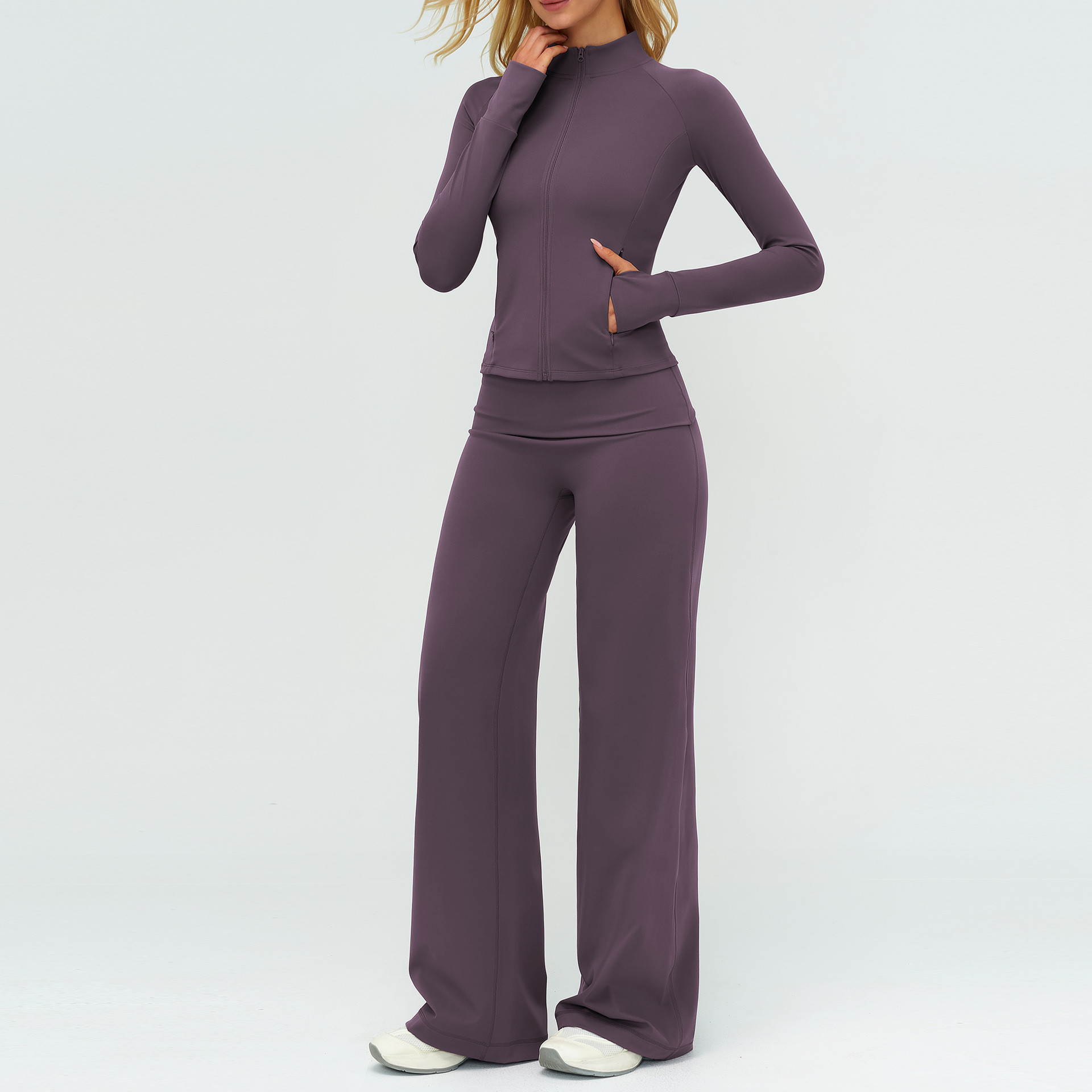 OEM & ODM Cross-Border European and American Brushed Yoga Set for Women - Loose Casual Fashion Long-Sleeved Three-Piece Sportswear for Outdoor Running & Fitness - Perfect for Wholesale & Sourcing Agents - Model 5529