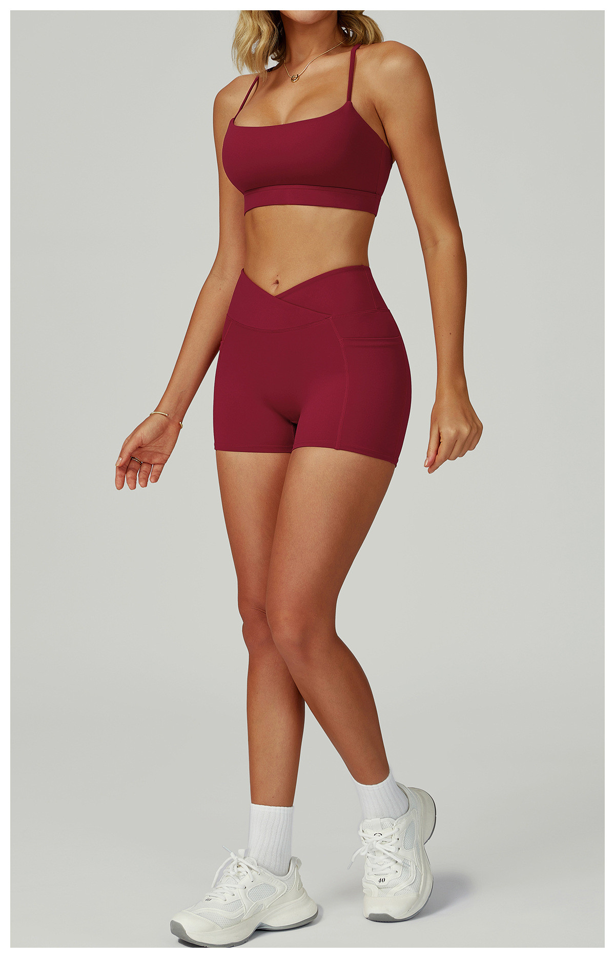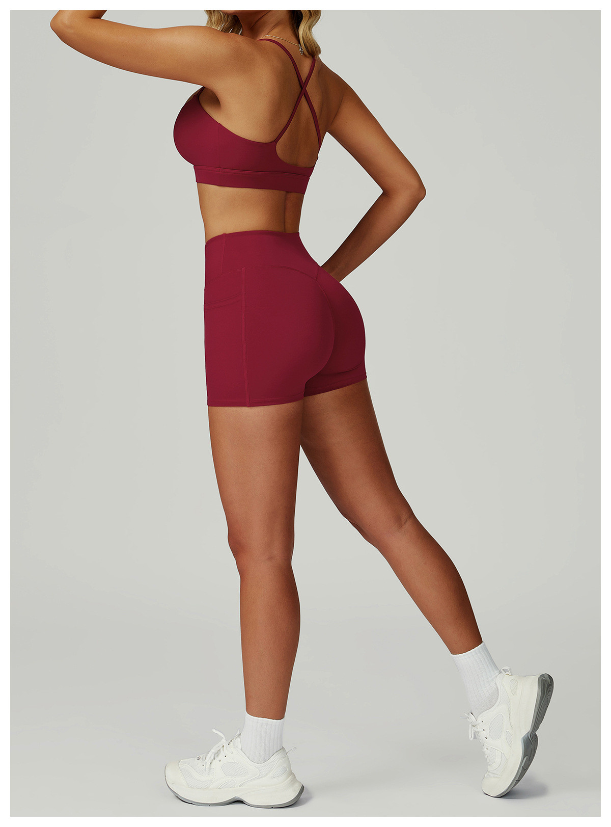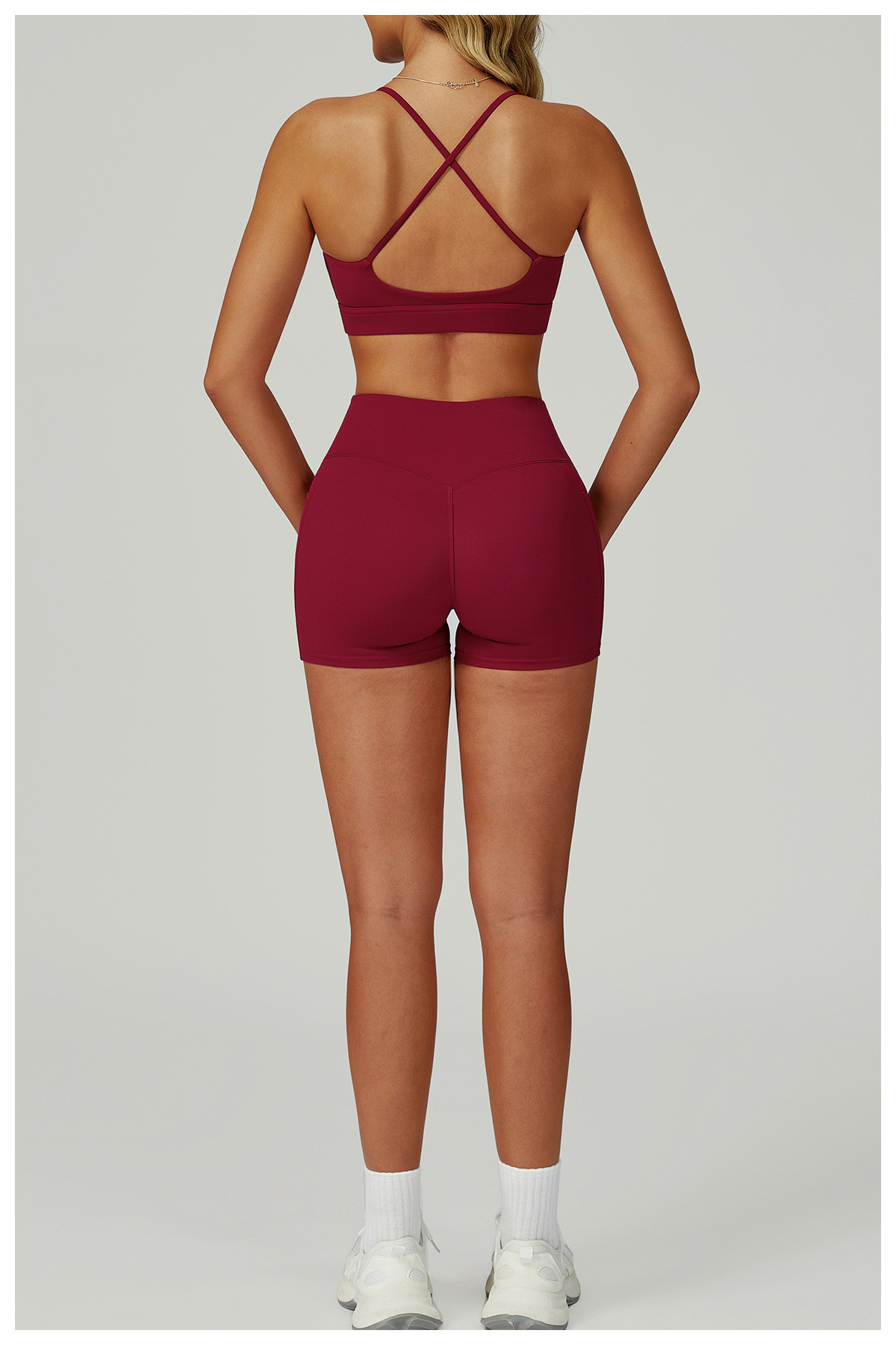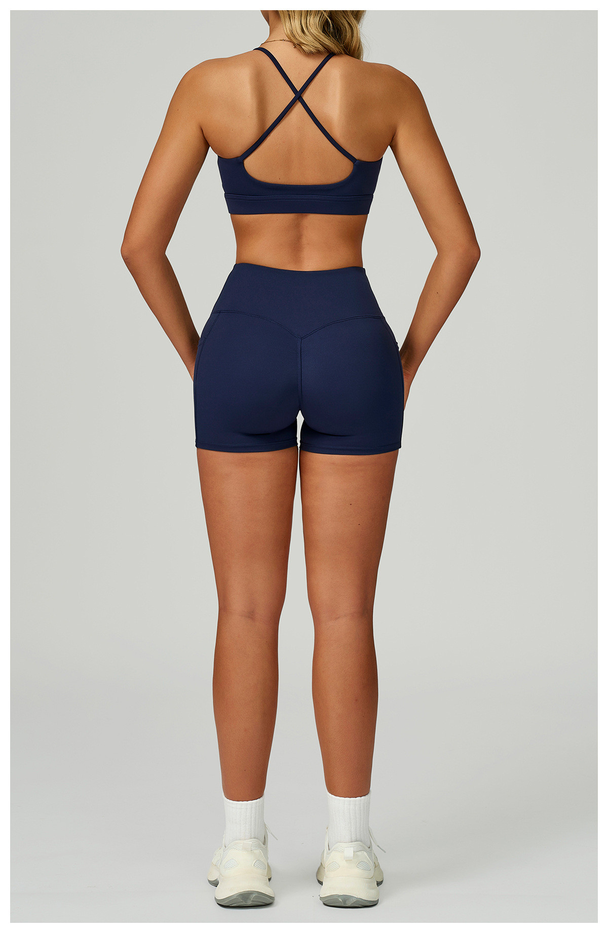 Wholesale Women's Naked Feeling Yoga Short Set – Hollow Cross Back Bra, High Waist Tummy Control Running Fitness Outfit 2030