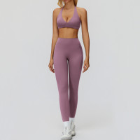 A sleek 2-piece active set made for training days and off-duty styling. The halter V-neck bra shapes and supports with a secure underbust band, while the high-waist leggings deliver a smooth, sculpting fit that stays put through every move. Clean lines, flattering proportions, and an effortless “set” look for yoga, pilates, gym, or travel. Key Features: 2-piece matching set: halter sports bra + full-length leggings V-neck halter cut for a lifted, streamlined silhouette Wide underbust band for stable support High-rise waistband for tummy control and a stay-put feel Stretchy, body-hugging fit for workouts or everyday wear