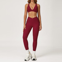 OEM & ODM V-Neck Racerback Sports Bra & Crossover High-Waist Leggings Set | Wholesale Activewear for Brands. Custom sizes & private labels available.