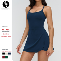 Cross-border hollowed-out backless dress, anti-glare base pants, soft fabric skirt, casual outdoor sport tennis dress, 9307
