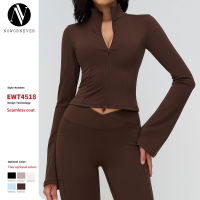 OEM & ODM Cross-Border Bare Sensation Yoga Jacket for Women - V-neck Zippered Flared Sleeve Sportswear for Outdoor Running & Fitness - Perfect for Wholesale & Sourcing Agents - Model 4518