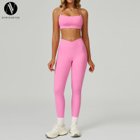 Premium Seamless Naked Feeling Yoga Set | Custom Logo High Waist Scrunch Leggings & Racerback Hollow Out Bra for Women's Fitness & Running - Ideal for Wholesale & Private Label Partners.