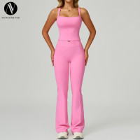 Premium B2B Women's Naked Feeling Seamless Yoga Flare Pants Set – High Waist Tummy Control Bootcut Pants with Cutout Back Sports Bra for Yoga, Running & Fitness – Custom Logo Available for Wholesale & Private Label Partners.