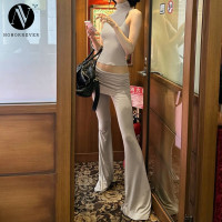 OEM & ODM Women's Fall 2025 Fashion Sleeveless Crop Top with High Waist Flare Pants Set, perfect for brands seeking stylish wholesale activewear.