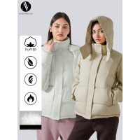 Private Label Women's Winter Hooded Jacket - Stylish, warm & windproof with drawstring waist. Perfect for OEM, ODM & wholesale needs.