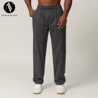 Cross-Border 100% Cotton Straight-leg Men's Sports Casual Trousers Autumn/Winter Home Commuting Outdoor Hiking Solid Color Sweatpants 1040